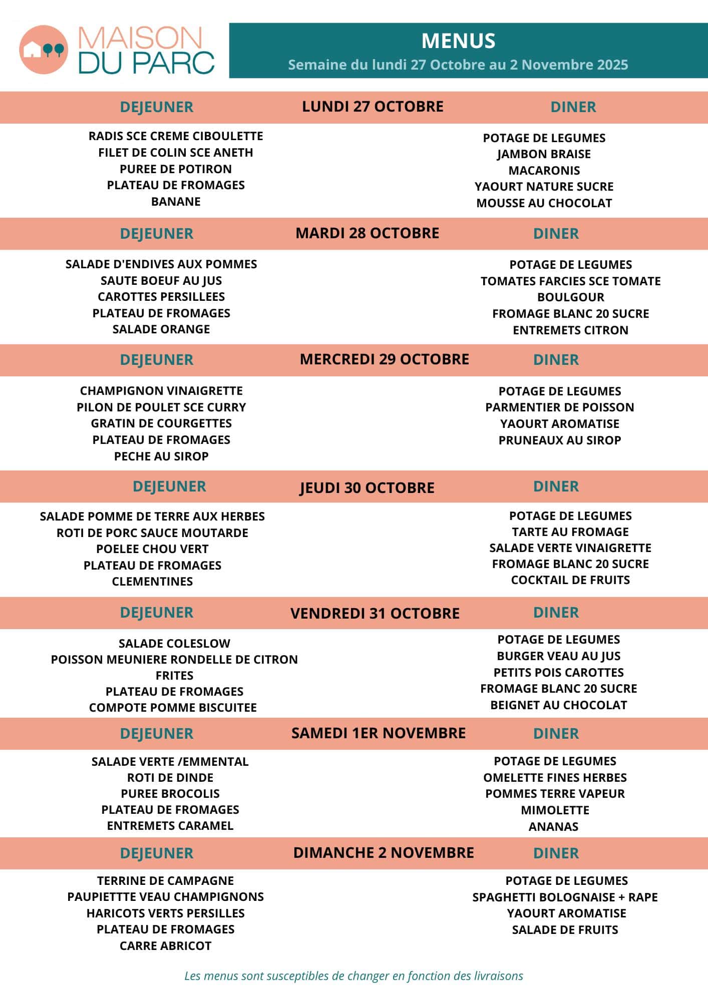 Les menus de la semaine